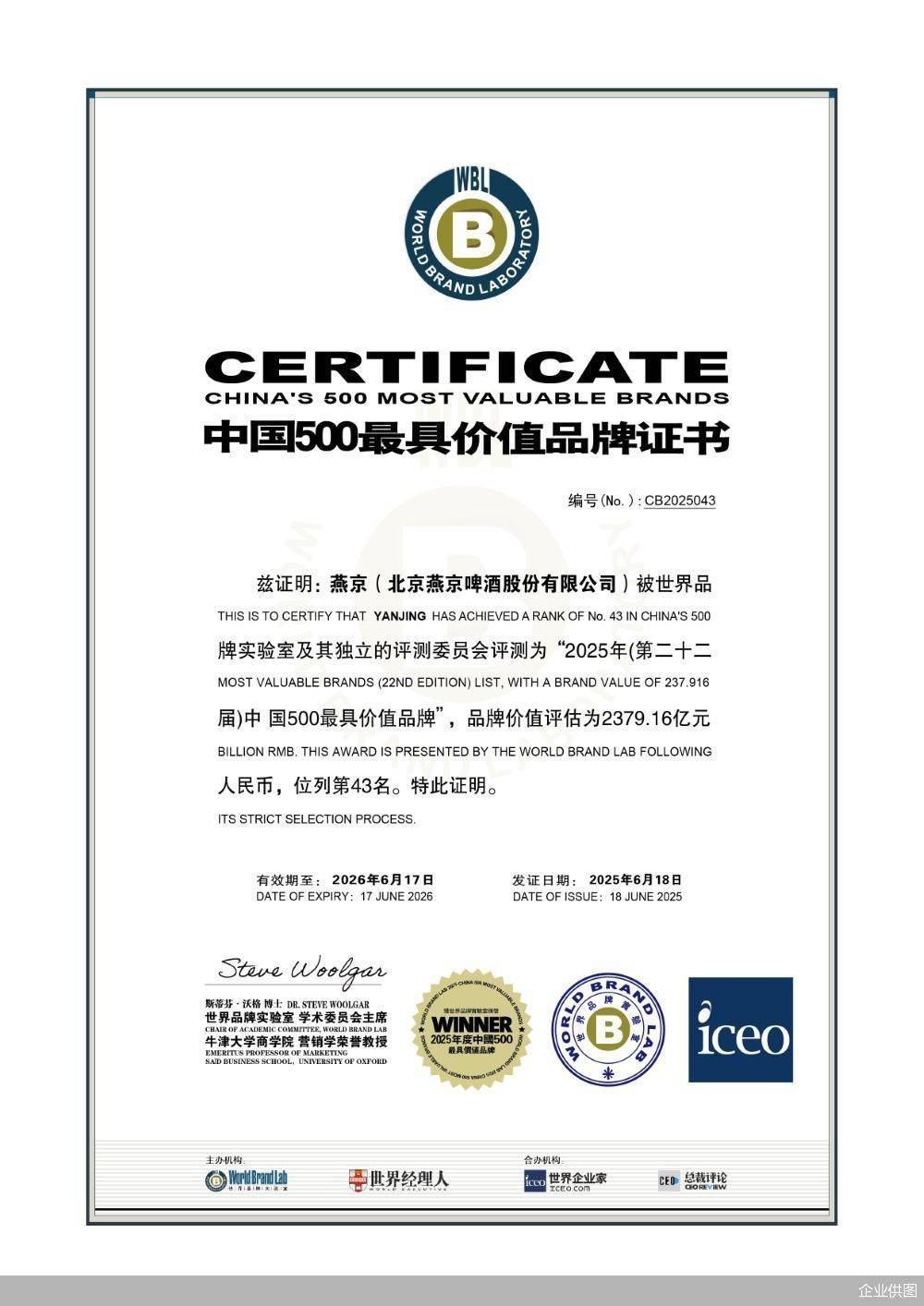 2025年6月18日,由世界品牌实验室主办的第22届“世界品牌大会暨中国500最具价值品牌发布会”在北京召开,燕京啤酒以品牌价值2379.16亿元的卓越成绩,再度荣登《中国500最具价值品牌》榜单证券配资炒股开户网站,相较于2023年1805.75亿元和2024年2236.95亿元的品牌价值再度拉升,展现了强劲的发展潜力。